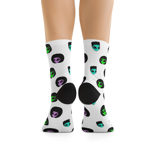 "Another Kind" - Colorful Alien Print Crew Socks - Fun & Unique Recycled Poly Socks - Eco-Friendly, Unique Gift for Space Lovers